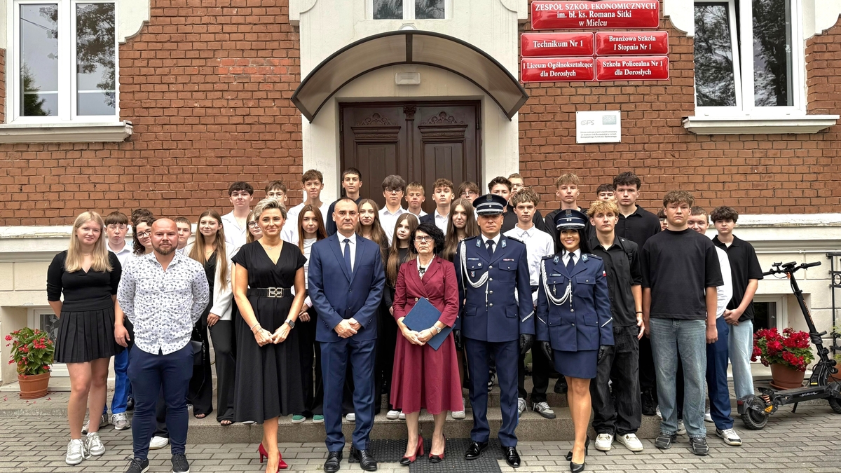 Dzisiaj, w Zespole Szkół Ekonomicznych im. bł. ks. Romana Sitki w Mielcu rozpoczął się rok szkolny, który na zawsze zapisze się w historii szkoły. Po raz pierwszy w murach "Ekonomika" naukę rozpoczęła klasa o profilu mundurowym, powołana dzięki bezprecedensowemu porozumieniu szkoły, Policji i Straży Granicznej. W tej wyjątkowej chwili nowych adeptów klasy mundurowej wsparli osobiście Komendant Powiatowy Policji w Mielcu oraz Oficer Prasowy mieleckiej Policji.