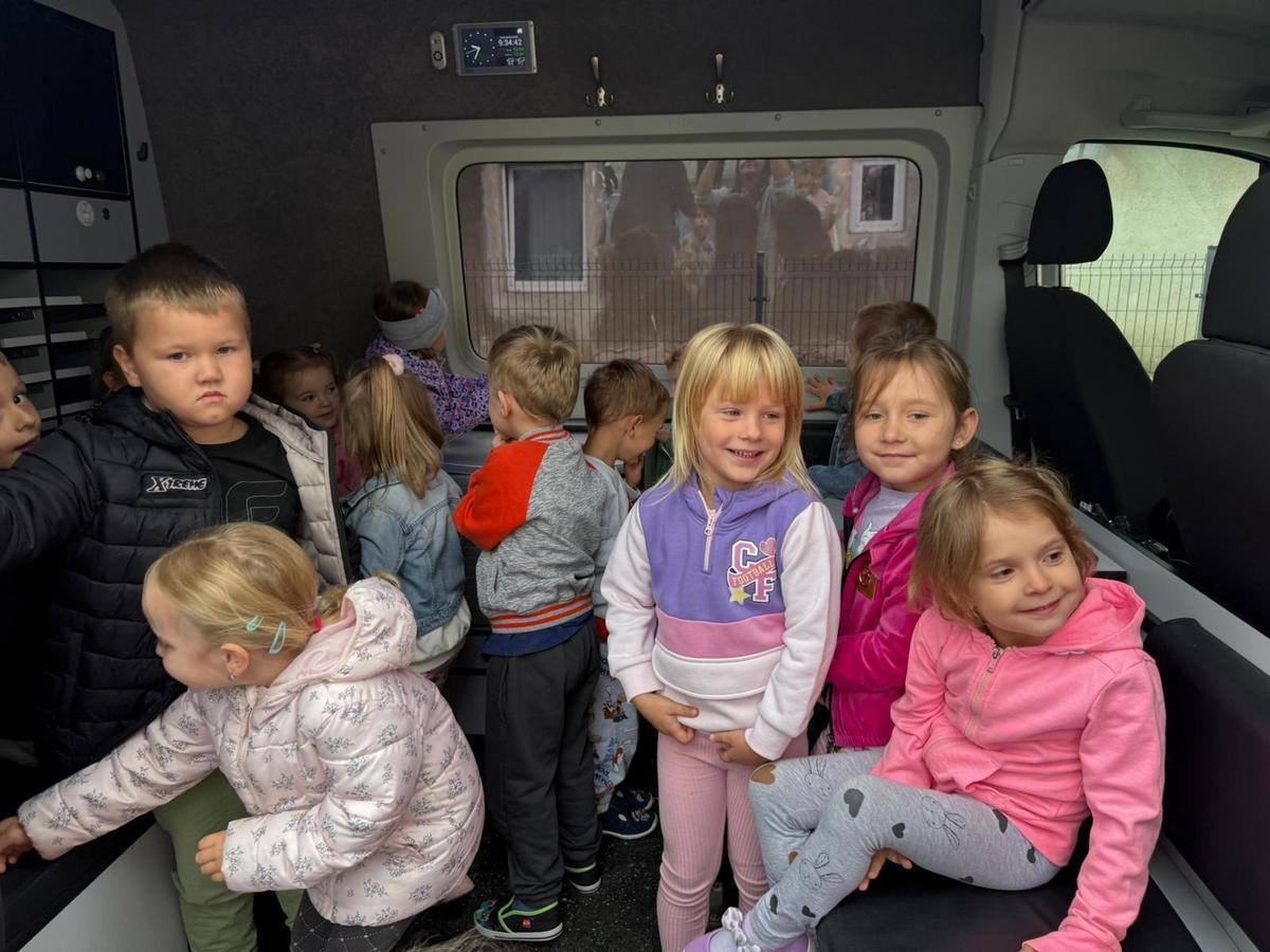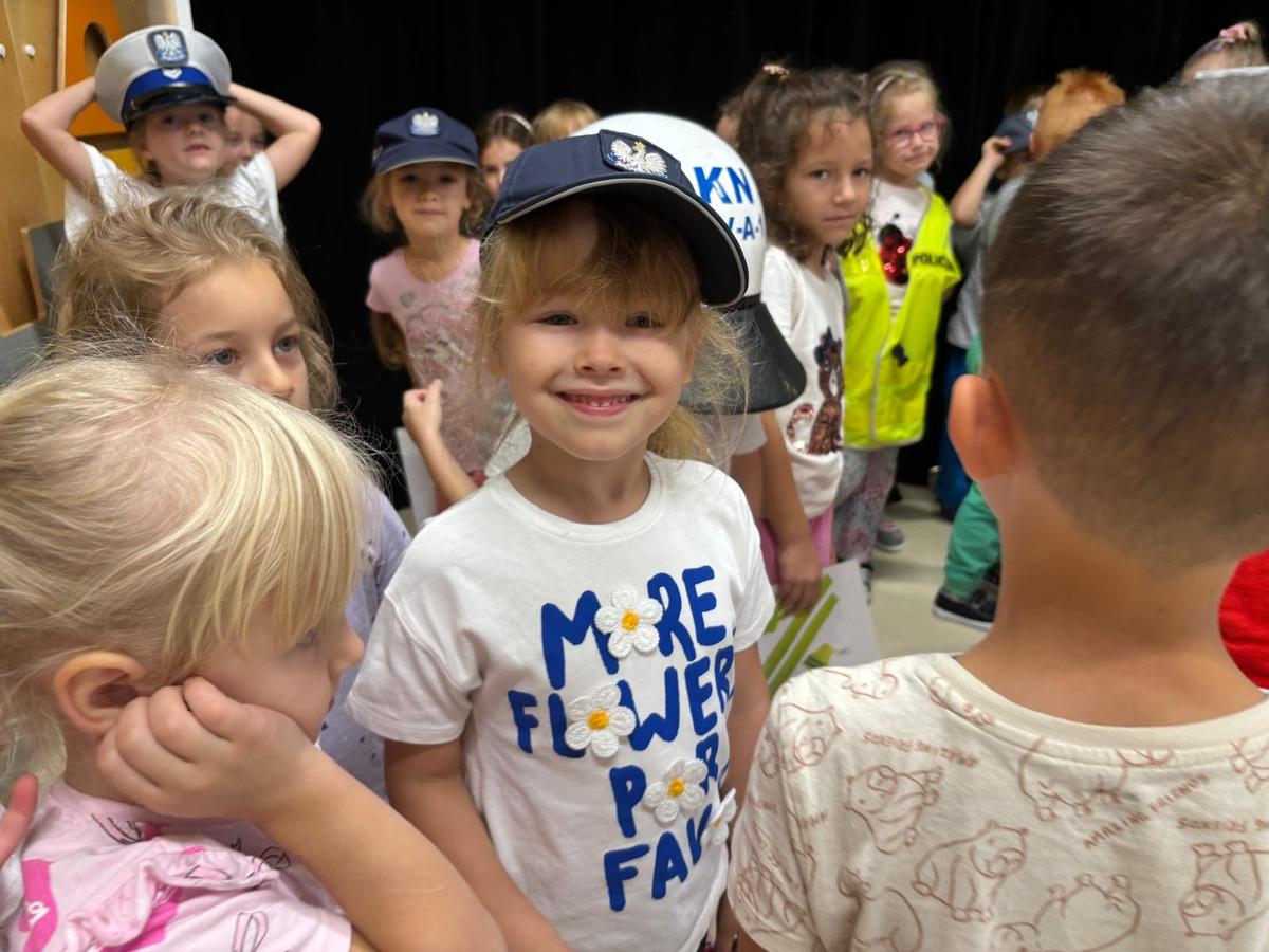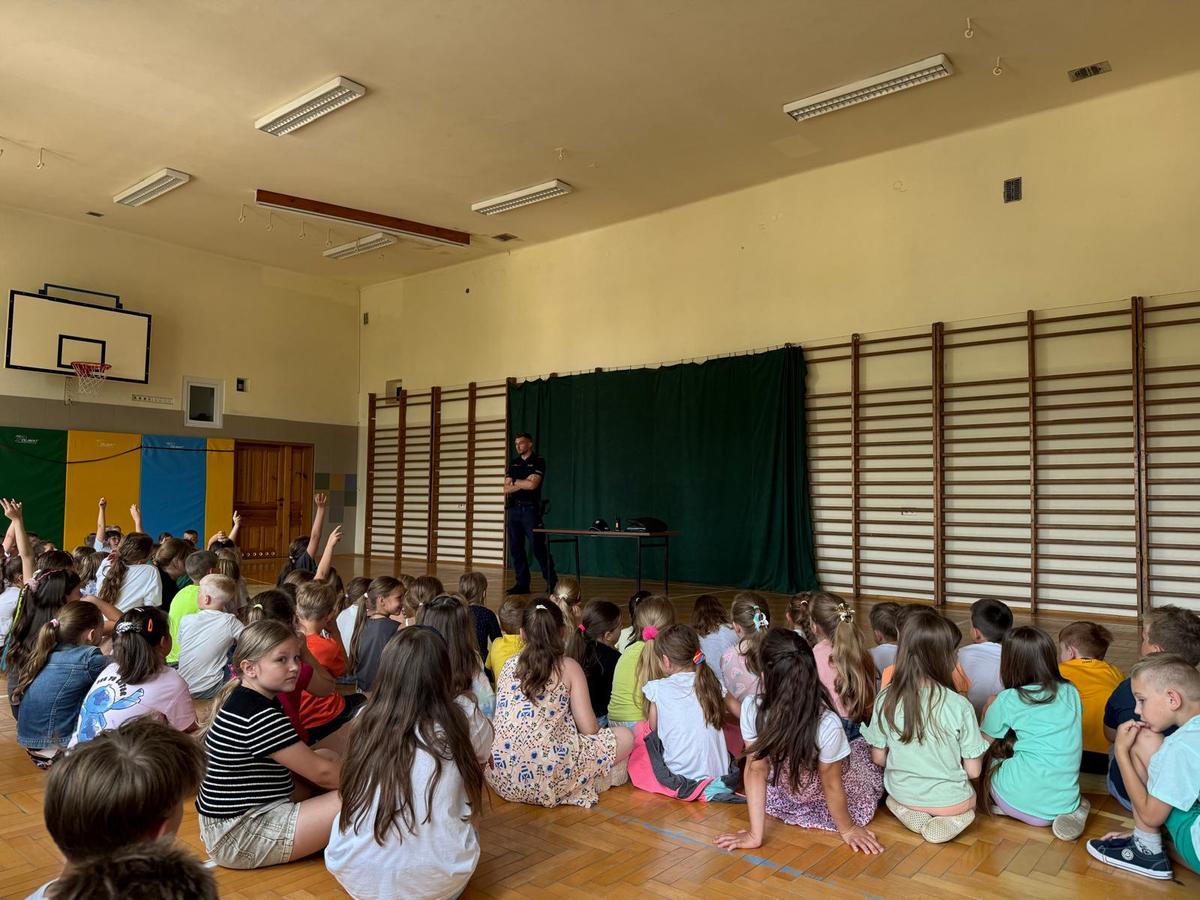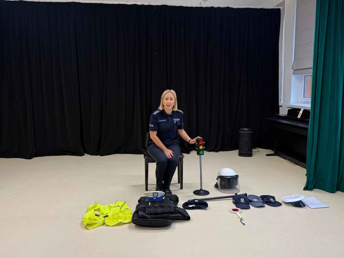 - rozmowa o odblaskach: duży nacisk położono na znaczenie elementów odblaskowych. Policjanci tłumaczyli i pokazywali, jak niewielki odblask przy plecaku lub na rękawie może uratować życie, czyniąc dziecko widocznym dla kierowcy z dużej odległości.