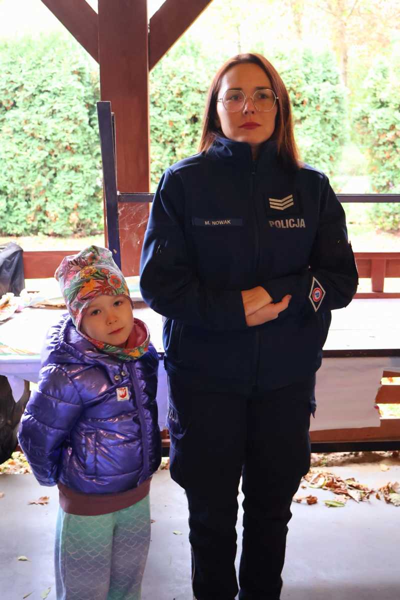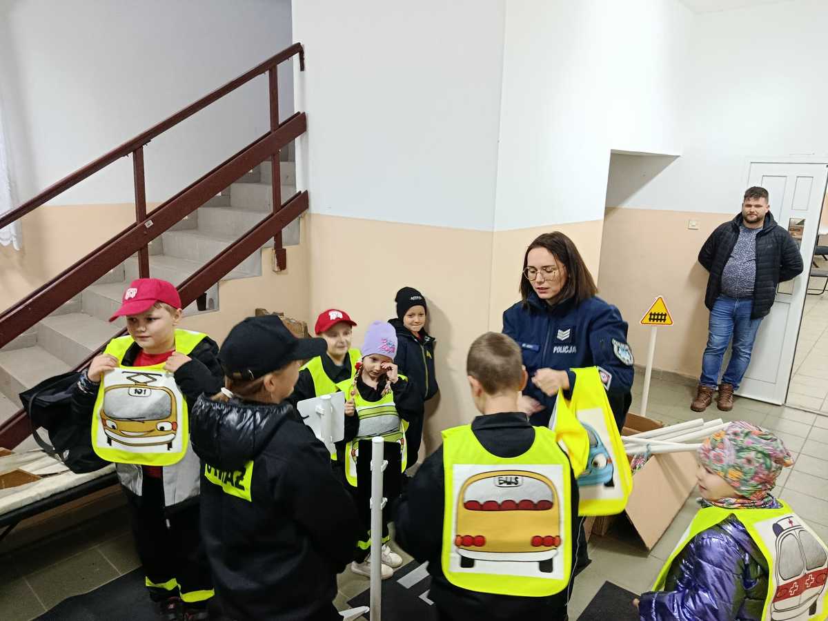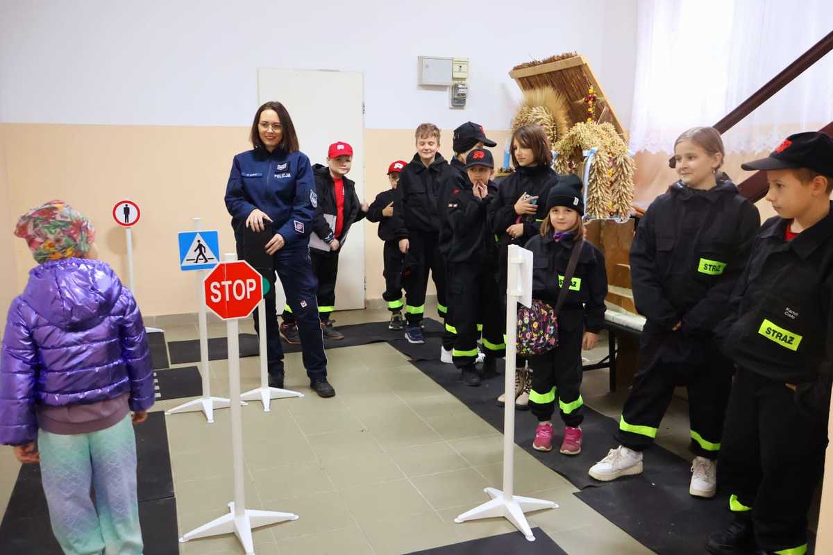 Sierż. szt. Marta Nowak z mieleckiej komendy omówiła zasady bezpiecznego poruszania się po drogach i kluczowe znaczenie elementów odblaskowych dla widoczności pieszego. Dla najmłodszych uczestników przygotowała specjalne miasteczko ruchu drogowego, gdzie dzieci mogły w praktyczny sposób przećwiczyć zasady ruchu drogowego, rozpoznawanie znaków oraz bezpieczne sposoby przechodzenia przez przejście dla pieszych – zarówno z sygnalizacją świetlną, jak i bez niej.