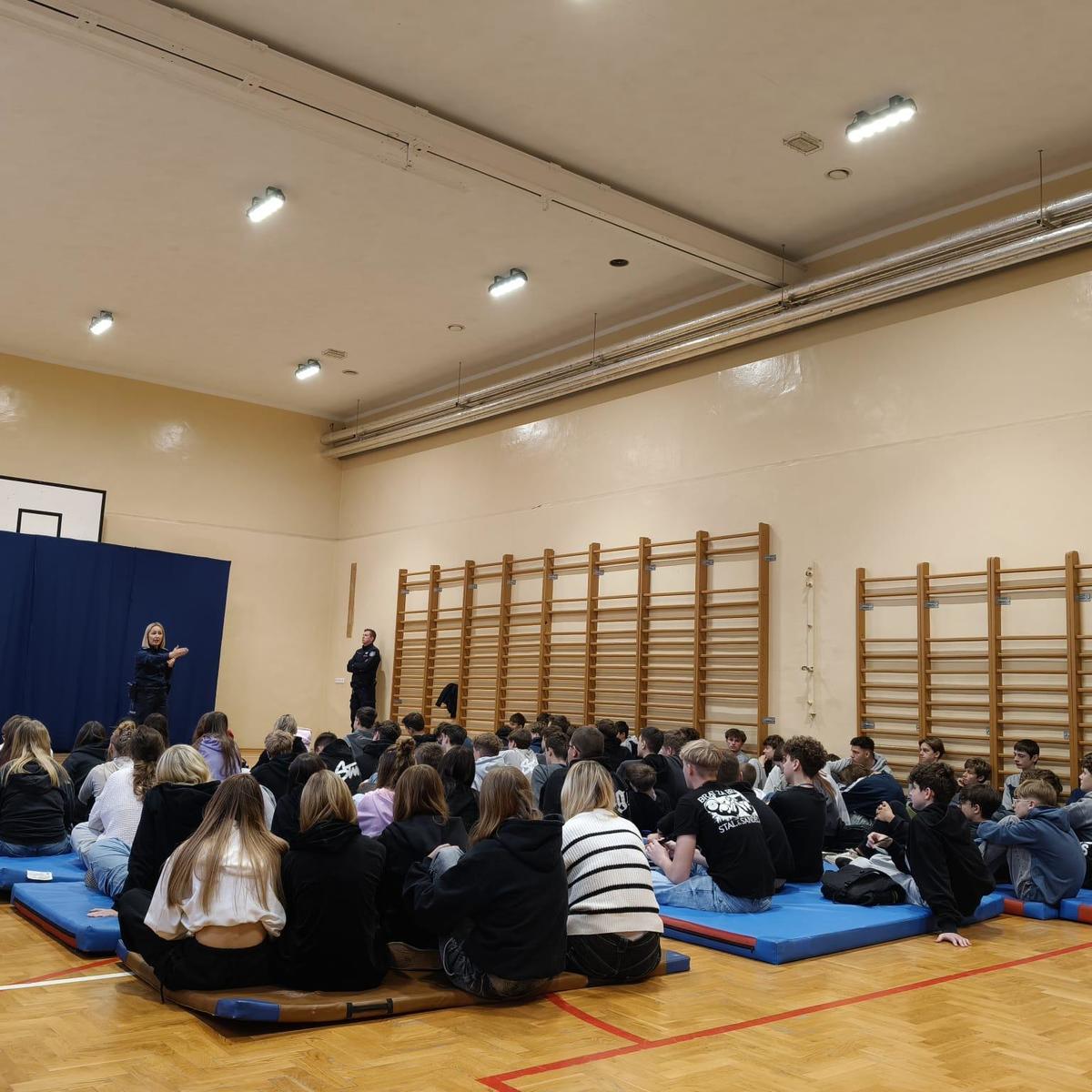 Spotkania w szkołach były również doskonałą okazją, by przypomnieć młodzieży o zasadach bezpiecznego korzystania z internetu oraz o tym, gdzie mogą szukać pomocy, jeśli staną się ofiarą lub świadkiem przemocy – zachęcając do kontaktu z Policją, pedagogami szkolnymi czy telefonami zaufania.