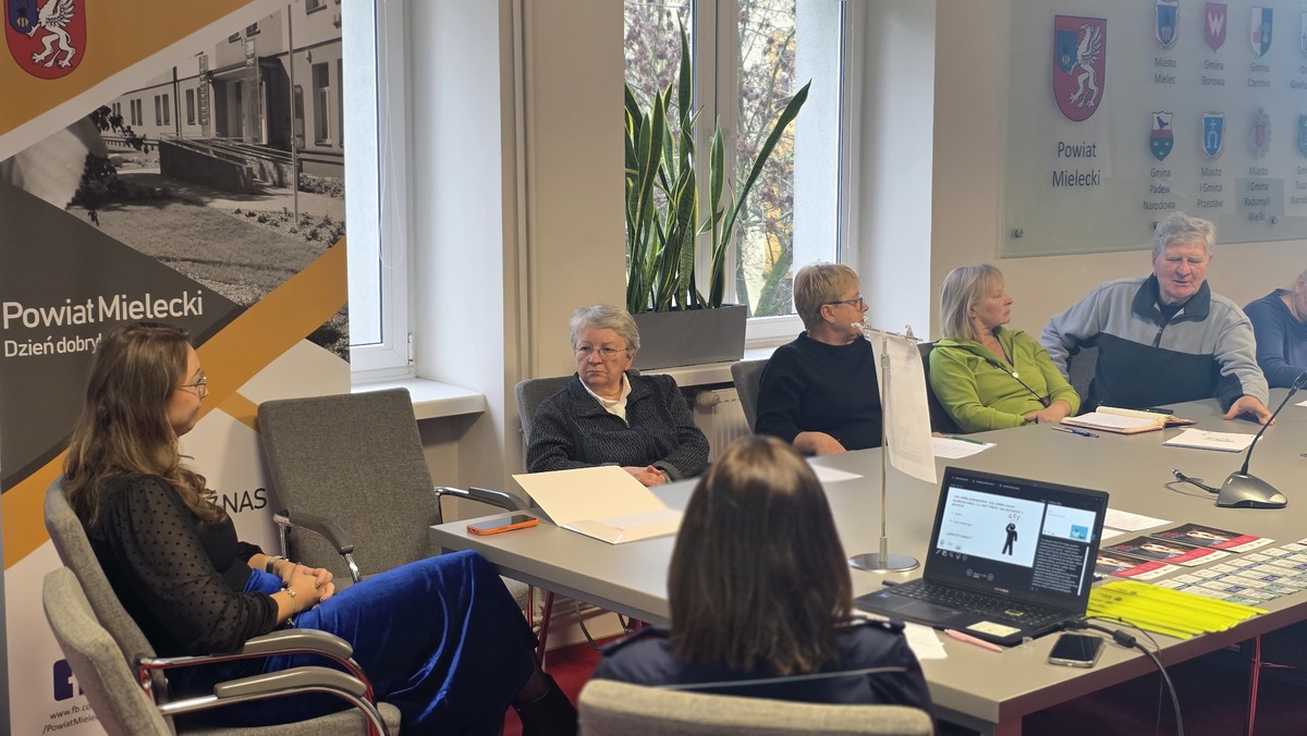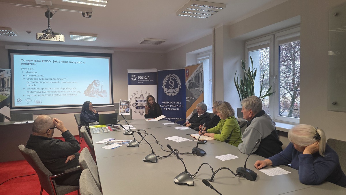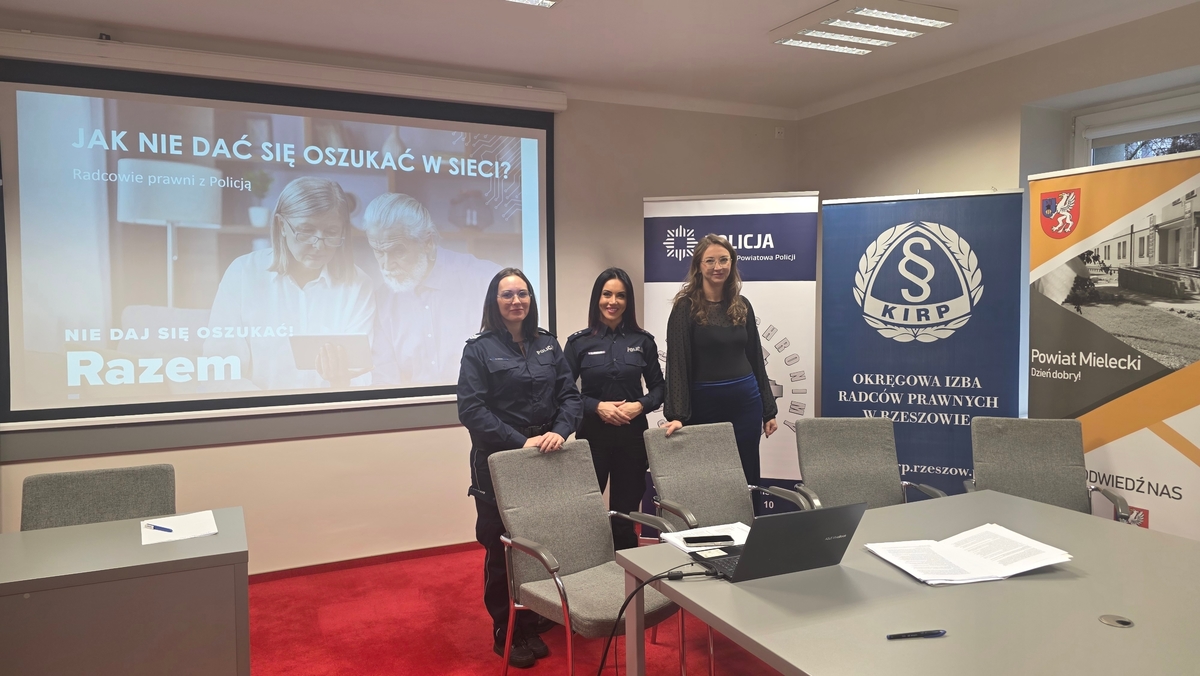W ramach ogólnopolskiej akcji profilaktycznej „Niebieski Parasol – Nie daj się oszukać! Razem bezpieczni!” funkcjonariuszki mieleckiej Policji wraz z radcą prawnym z Okręgowej Izby Radców Prawnych w Rzeszowie spotkały się dziś z seniorami z powiatu mieleckiego. Wydarzenie odbyło się w budynku Starostwa Powiatowego w Mielcu i zgromadziło liczną grupę mieszkańców zainteresowanych tematyką bezpieczeństwa.