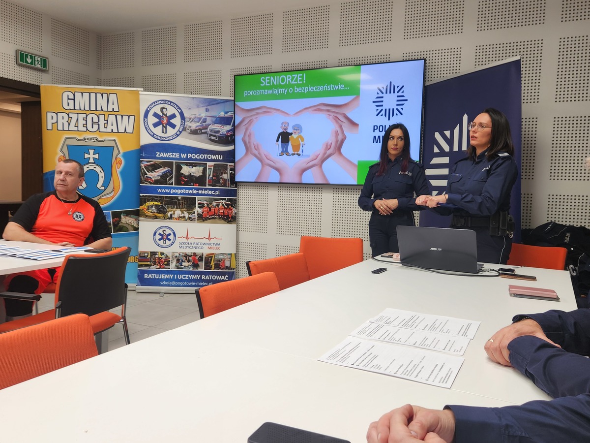 · Szczególną uwagę poświęcono seniorom. Przedstawiono algorytmy postępowania w przypadku potencjalnego zagrożenia oszustwem „na wnuczka” czy „na policjanta” oraz kampanię „#JestemTuCZEKAM”, mającą na celu szybkie odnajdywanie osób zaginionych, szczególnie w podeszłym wieku.