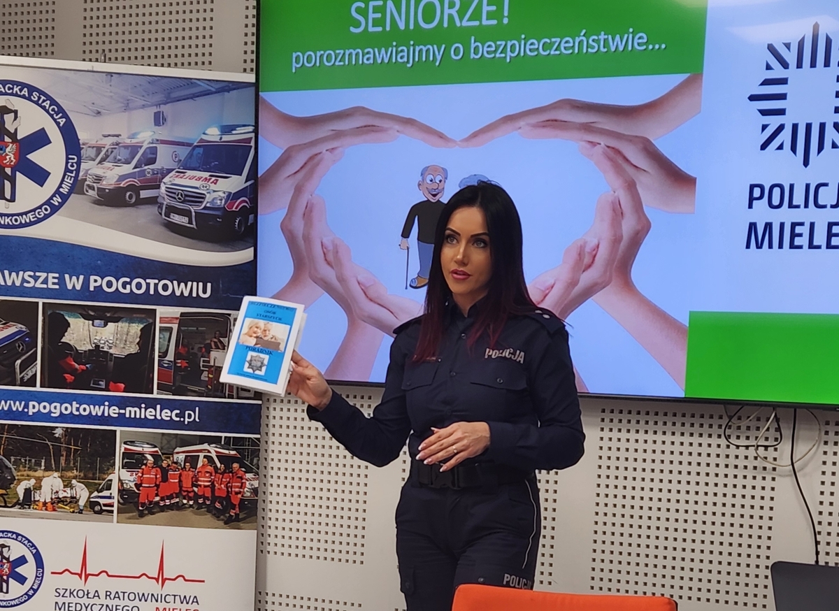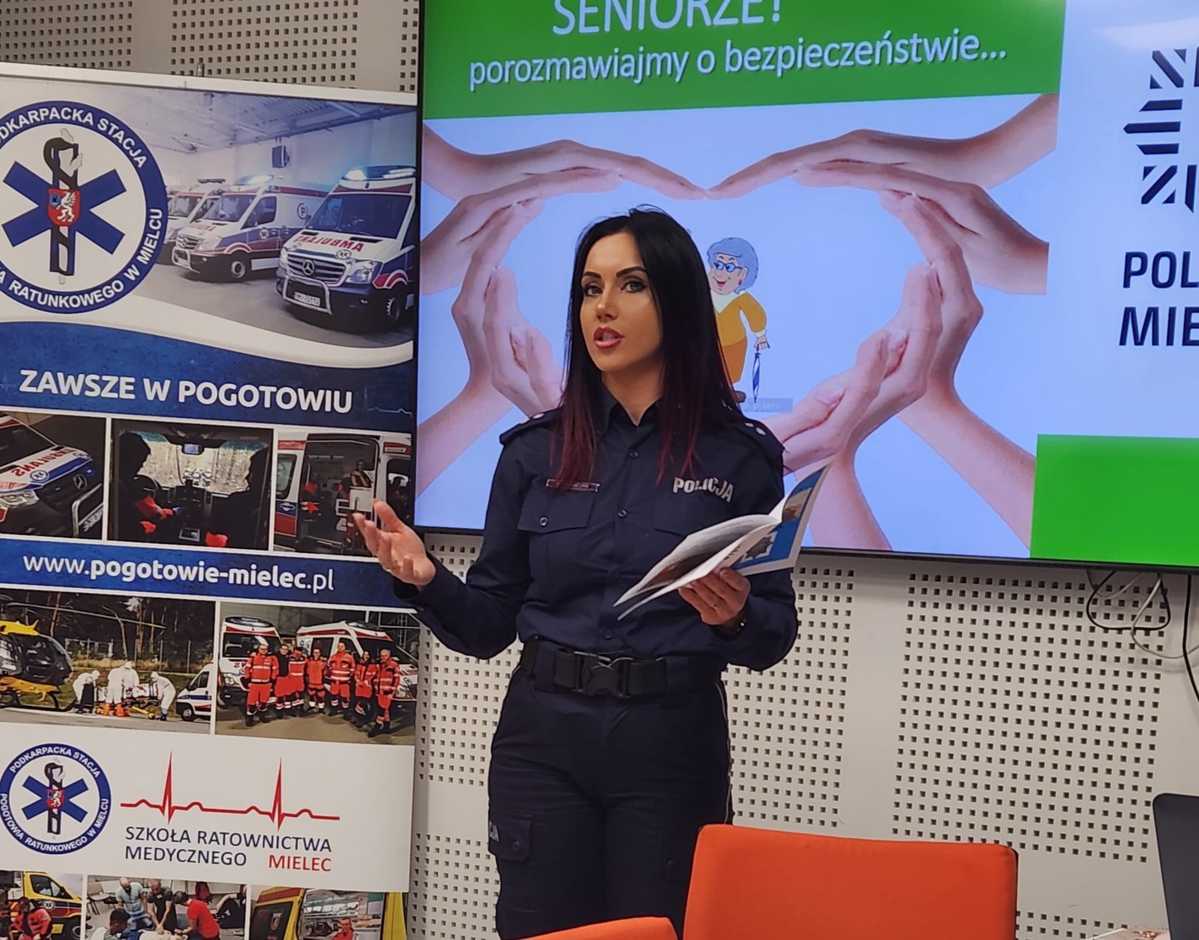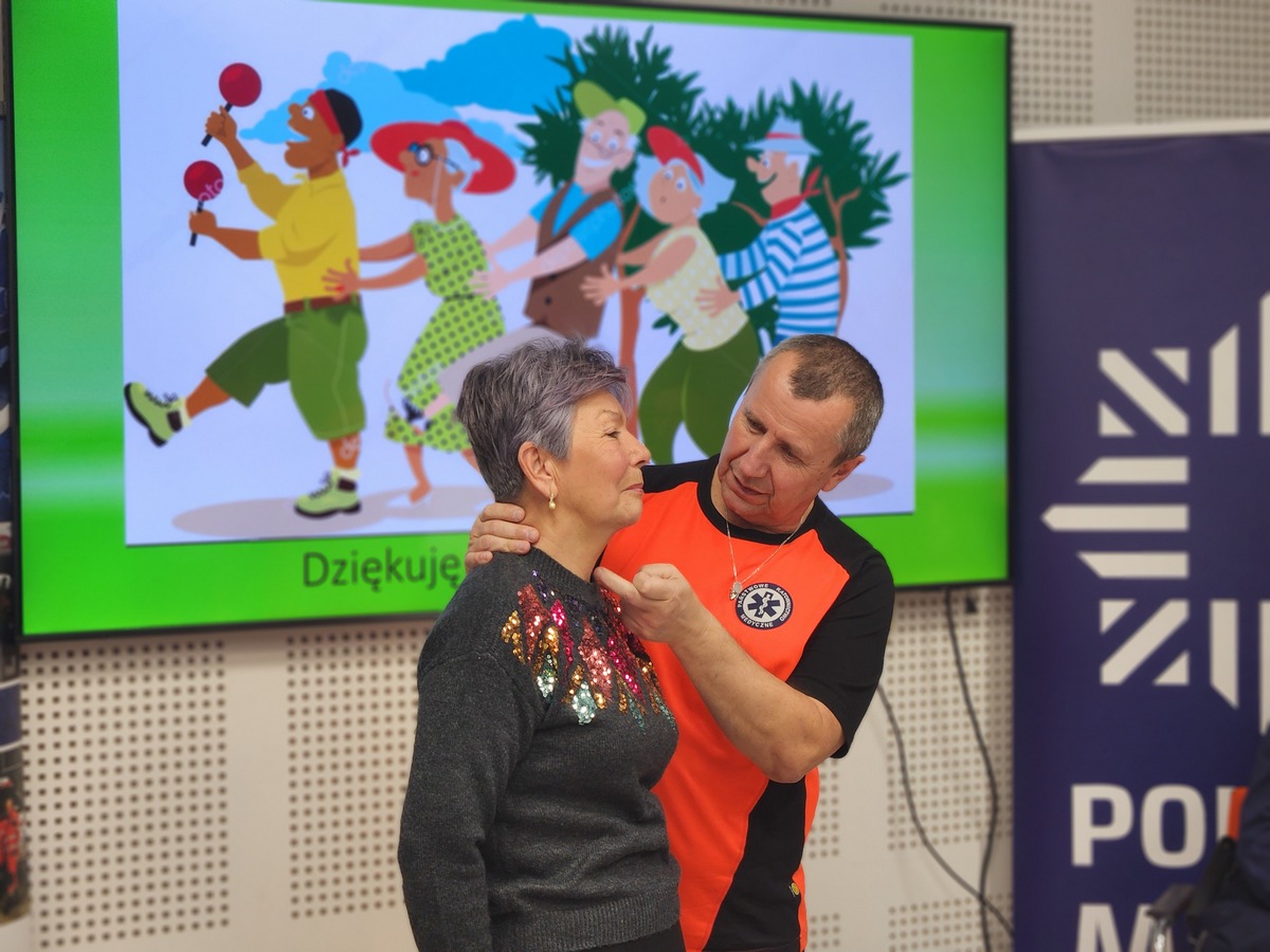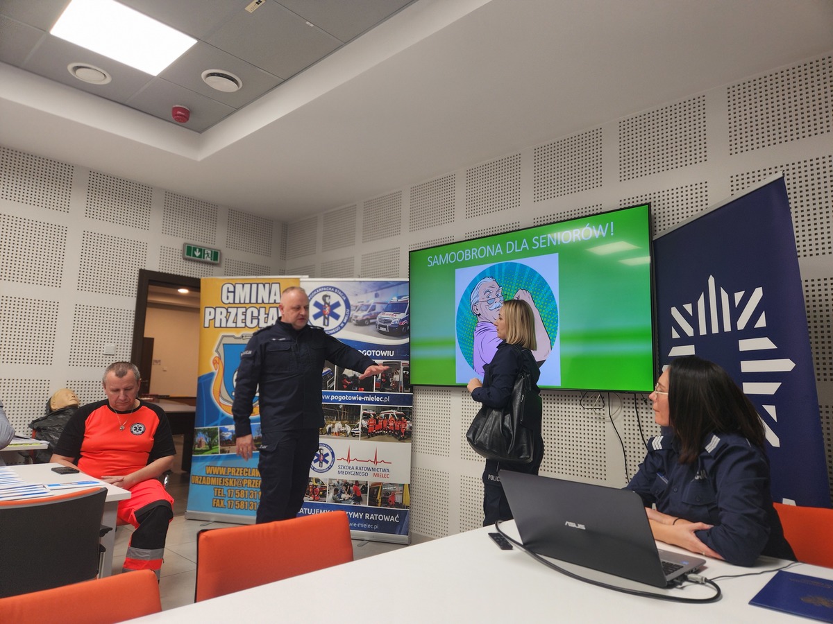 Równie dużym zainteresowaniem cieszyły się warsztaty z samoobrony, które poprowadził policyjny instruktor taktyk i technik interwencji – asp. szt. Łukasz Wrażeń. W trakcie zajęć teoretyczno-praktycznych wyjaśnił on seniorom podstawowe zasady skutecznej ochrony osobistej. Uczestnicy uczyli się, jak w bezpieczny i prosty sposób uwolnić się z chwytu lub jak zablokować atak, co dostarczyło im niezbędnej wiedzy i pewności siebie w kontekście potencjalnego zagrożenia.