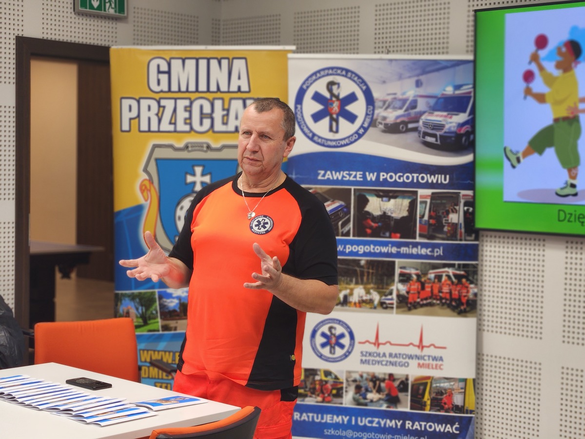 Debata miała nie tylko teoretyczny, ale i niezwykle praktyczny wymiar. Głos zabrał również ratownik medyczny z Podkarpackiej Stacji Pogotowia Ratunkowego w Mielcu - Maciej Rachwał, który przybliżył zasady udzielania pierwszej pomocy w przypadku zatrzymania czynności życiowych. Uczestnicy mogli zobaczyć i samodzielnie przećwiczyć na fantomach resuscytację krążeniowo-oddechową (RKO), zdobywając bezcenne umiejętności, które w krytycznej sytuacji mogą uratować czyjeś życie.