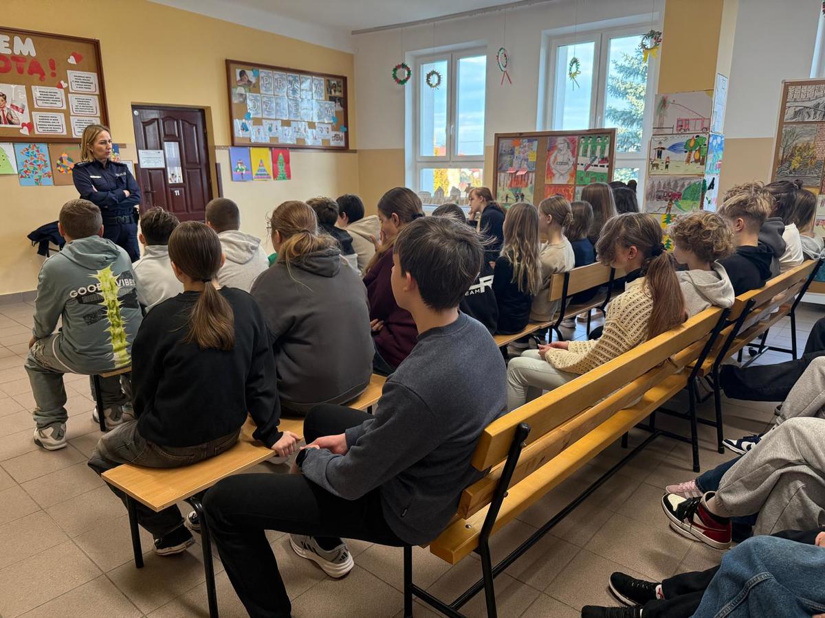 Spotkanie miało charakter interaktywny – uczniowie mieli wiele pytań i chętnie dzielili się swoimi przemyśleniami. Dzięki otwartej dyskusji policjantki mogły dotrzeć z przekazem profilaktycznym do młodej publiczności w sposób skuteczny i zrozumiały.