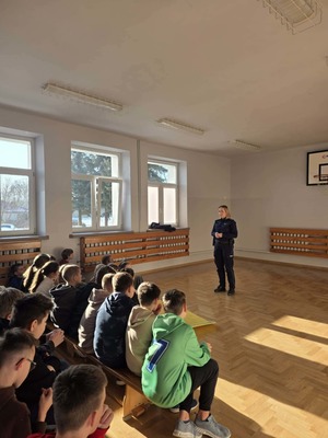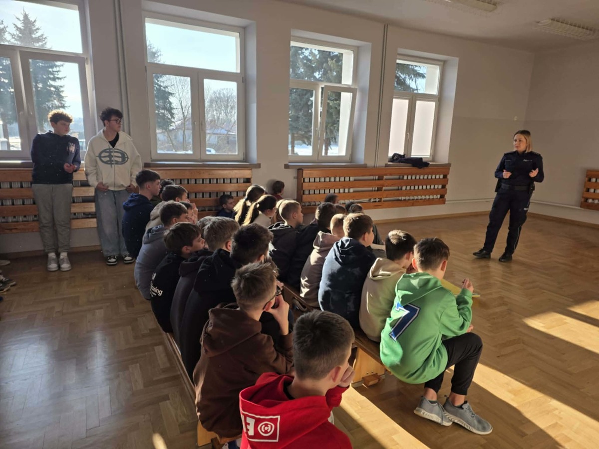 Spotkanie miało charakter interaktywny. Uczniowie chętnie dzielili się swoimi spostrzeżeniami i doświadczeniami oraz zadawali wiele pytań, wykazując duże zainteresowanie tematyką bezpieczeństwa. Takie bezpośrednie rozmowy to doskonała okazja, by w przystępny sposób budować świadomość i wyrabiać w młodych ludziach odpowiednie nawyki.
