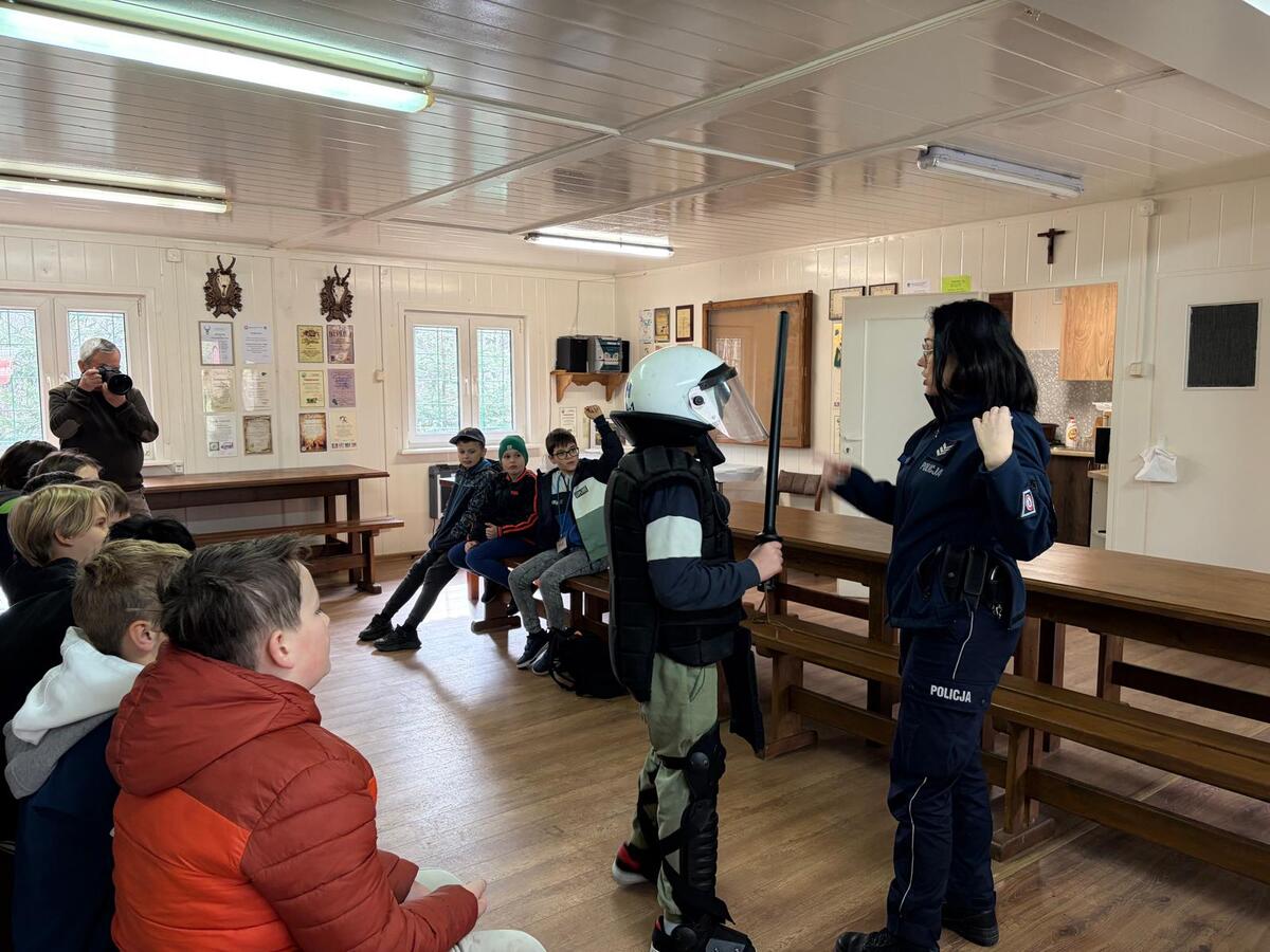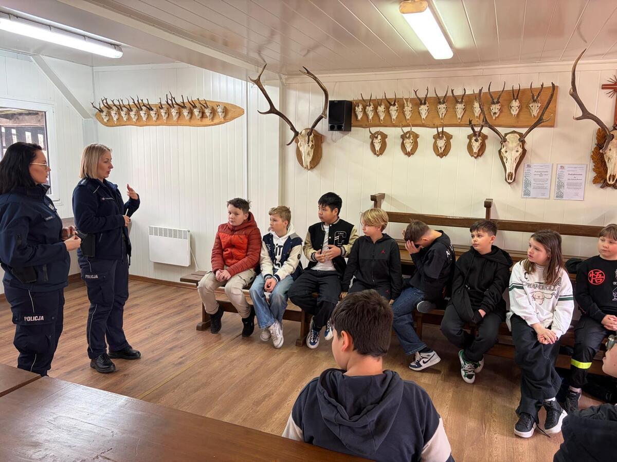 Policjanci z wizytą w Domu Myśliwskim – prelekcja dla uczniów z Niepublicznej Szkoły Podstawowej w Mielcu